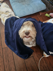Super sweet, smart, extremely food driven, gets along with other dogs and cats. Ready to please, not hard to fall in love with.