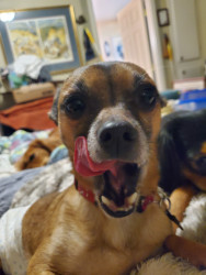 Sweetest little Deer head Chihuahua mix small dog. He has the most expressive dark eyes, with one floppy ear. Was a rescue puppy.