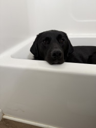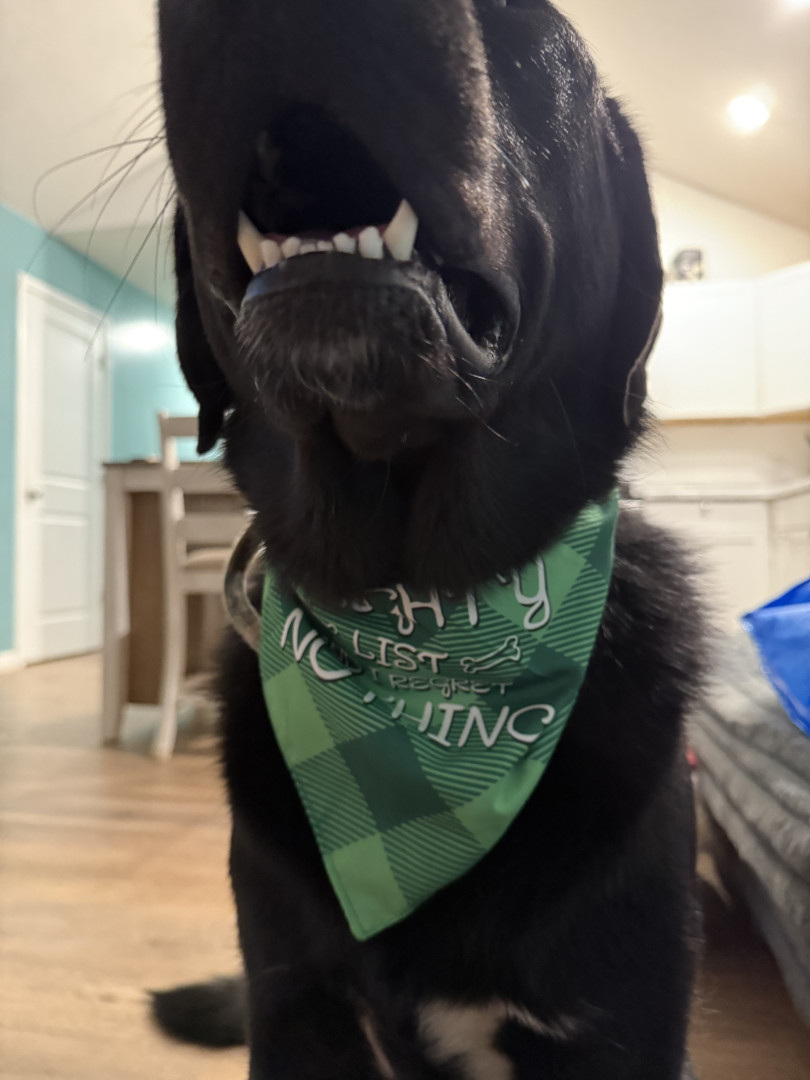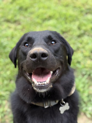 Baxter is a Great Pyrenees and black lab mix with a goofy and loving personality