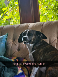 My granddog Bean was a street dog eating garbage from a can. My son rescued her and she loves to smile