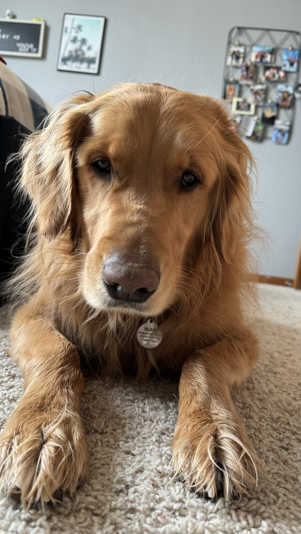 bean is a calm, loyal, rock chaser. he loves to go for walks at the park, and sleep at home!