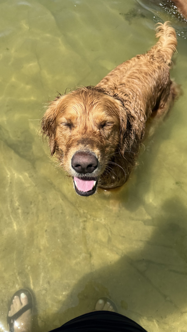 He would rather chase rocks and apples than tennis balls. he also knows how to fish and catches them when in the lake.