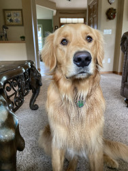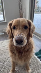 he loves everyone, calms people down, and is so cute. he is so fluffy and has so much patience. he really is just the perfect dog!