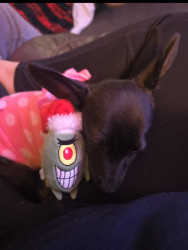 Bean is obsessed with her rope toy, hello kitty stuffy, and teething bones at the moment. She loves chicken jerky grillers.