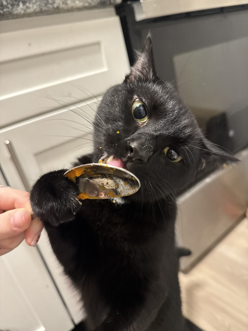 Bean! His previous owner had him locked in a room the first year of his life. He’s now living lavish with his kitten sister, mom and dad🫶🏼