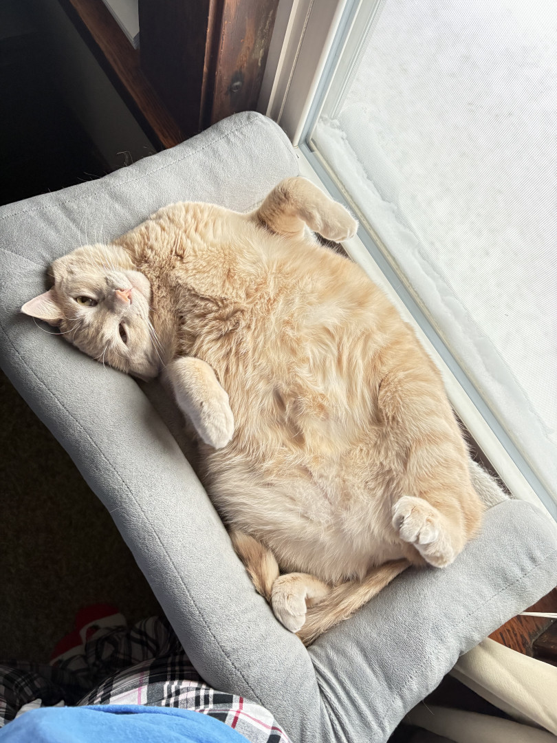 When bean REALLY wants something he’ll sit there and meow but also try to roll underneath himself if that makes sense.. I think he’s just trying to be dramatic