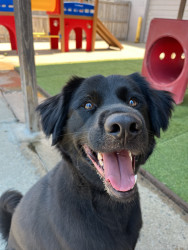 Black golden retriever. He is generally lovable and quiet. He barks when he wants out of the house and waits patiently for you to let him.