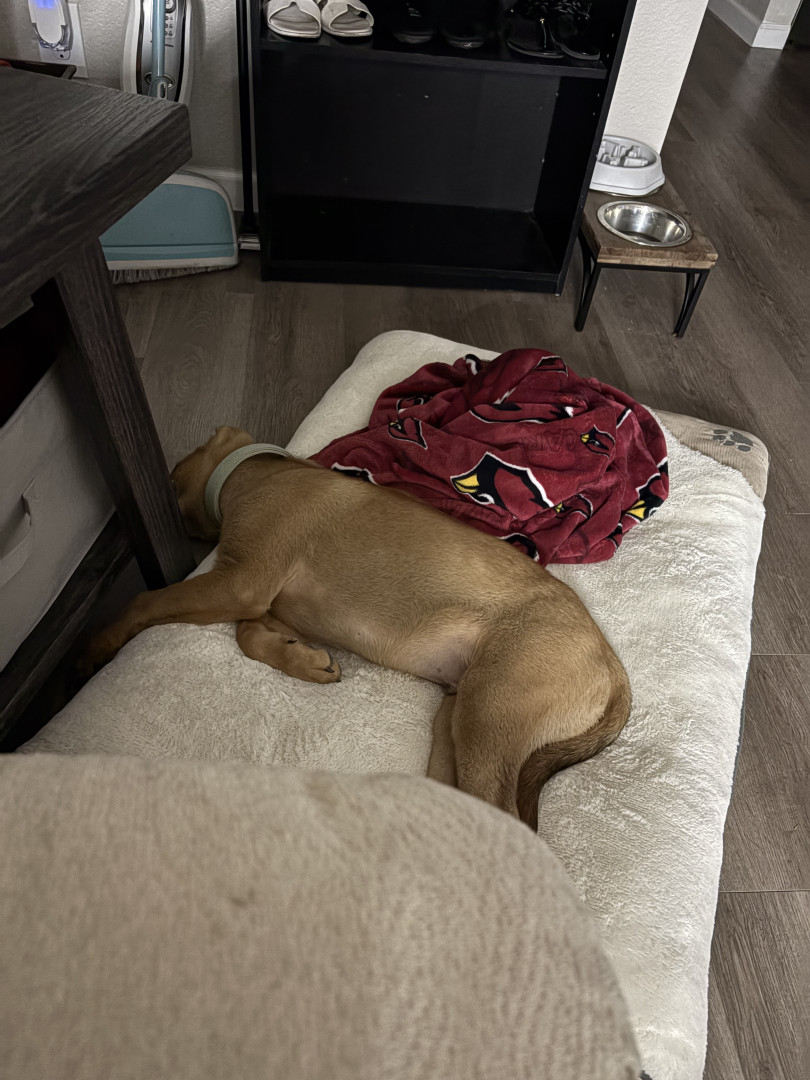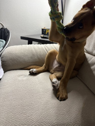 Bear is a loving and very playful dog also a huge cuddle bug! he is 9months old as of now and loves to be outside and play with other dogs!