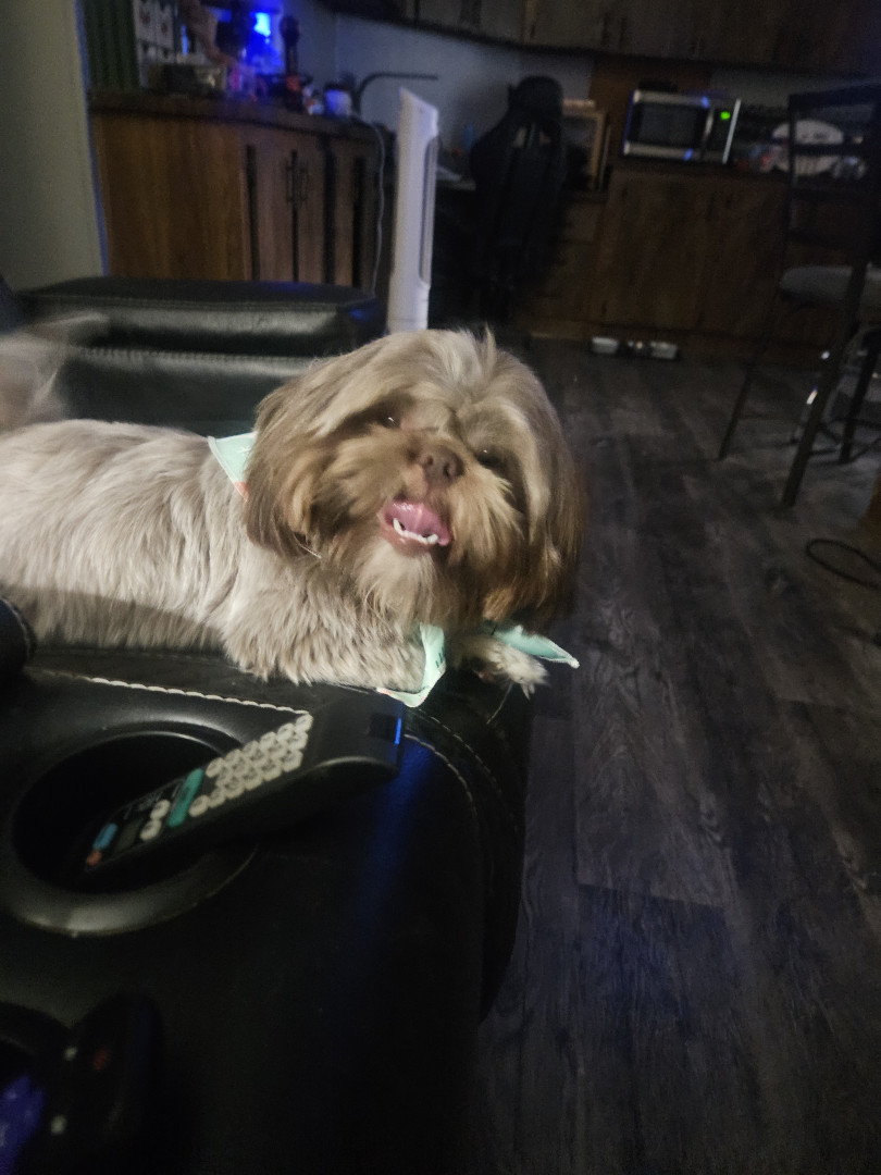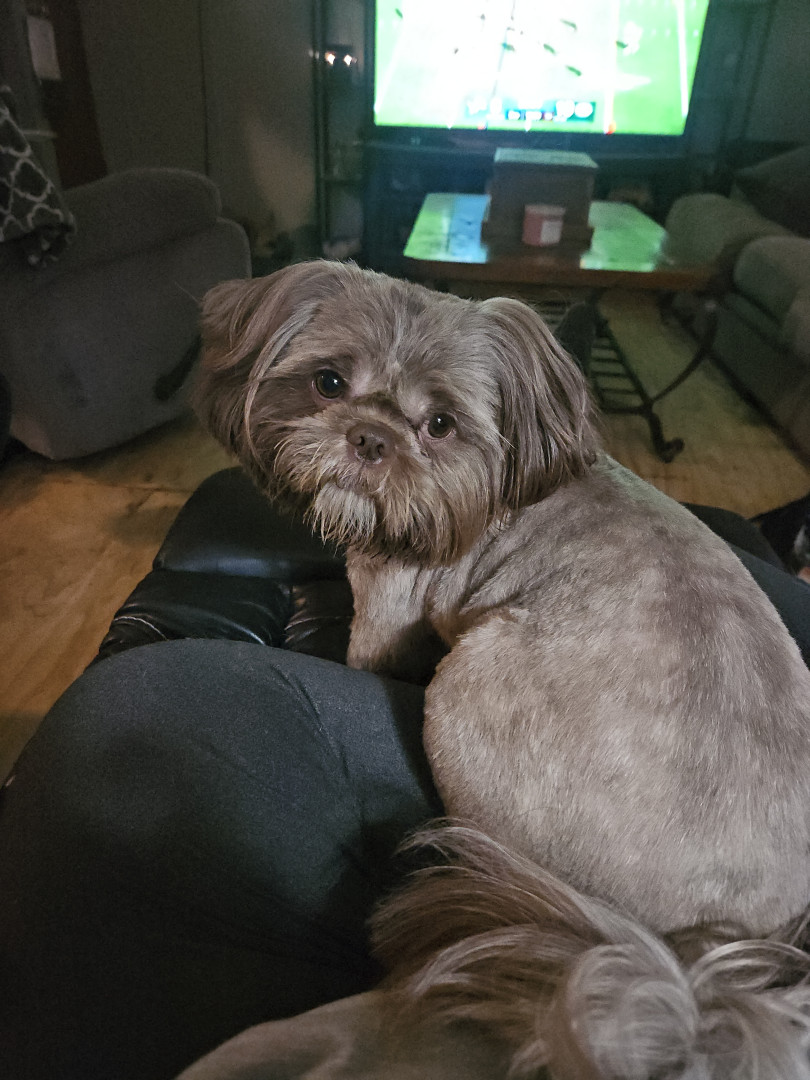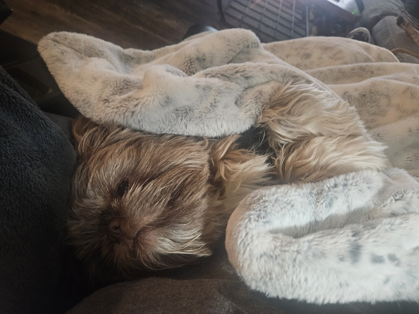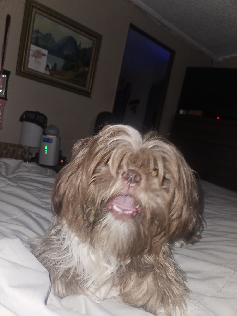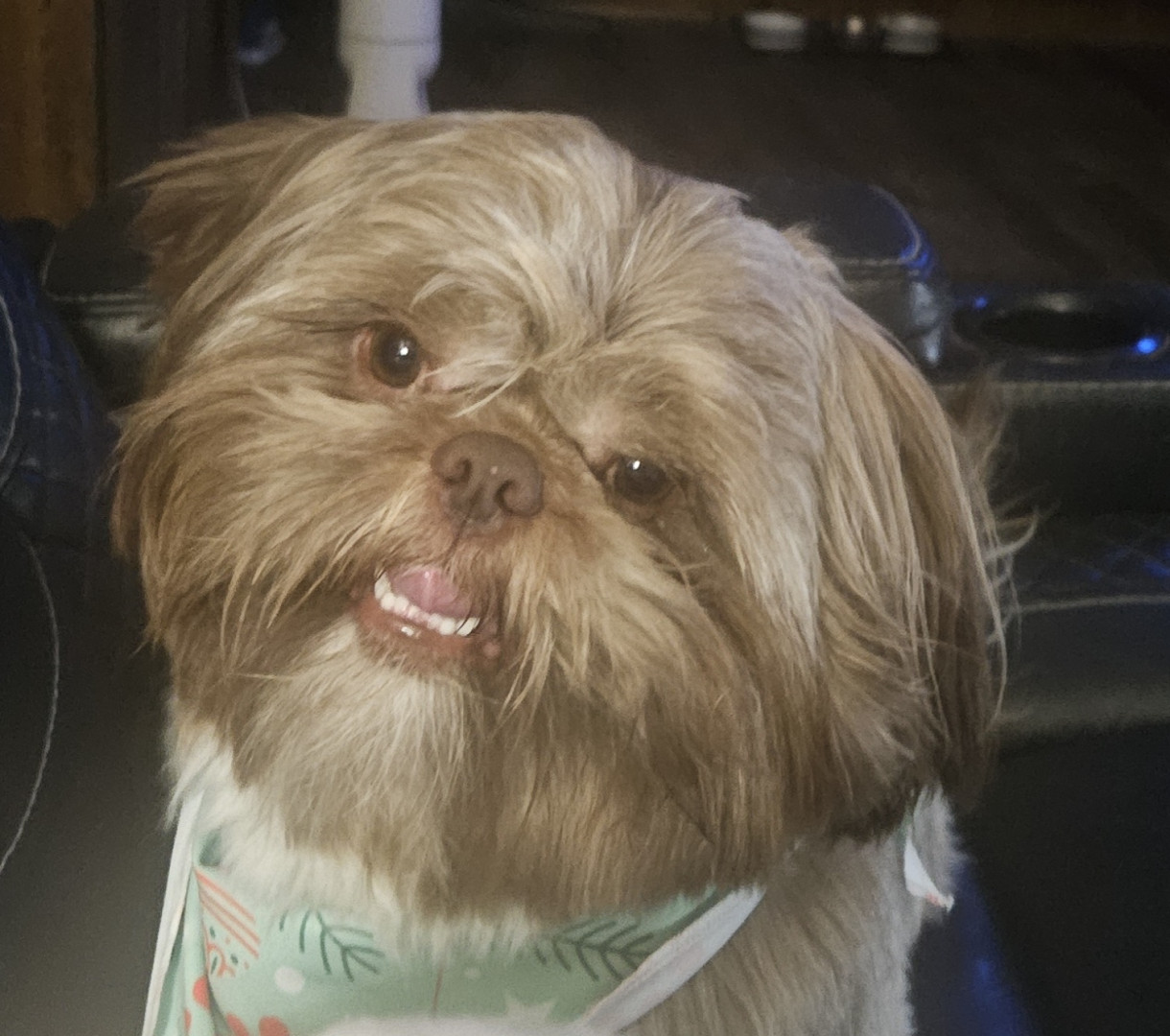 His most unique quality is probably his fur. He was chocolate brown when we adopted him and got him groomed for the first time and now it appears to have highlights...very cool
