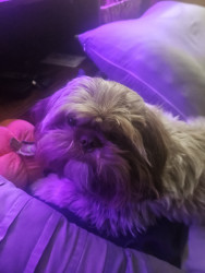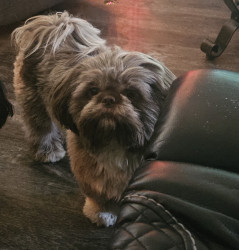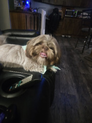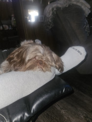 Receive Text UpdatesHis favorite toy is squeaky pumpkin that he received from his groomer around Halloween. He's very picky on his treats but he loves beggin strips and loves a good raw hide to chew on