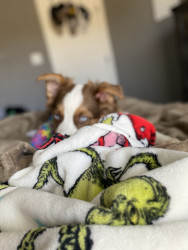 A fun, crazy puppy full of energy, zoomies, kisses, and nonstop personality. Life is never boring with this little chaos! He’s a Aussie.