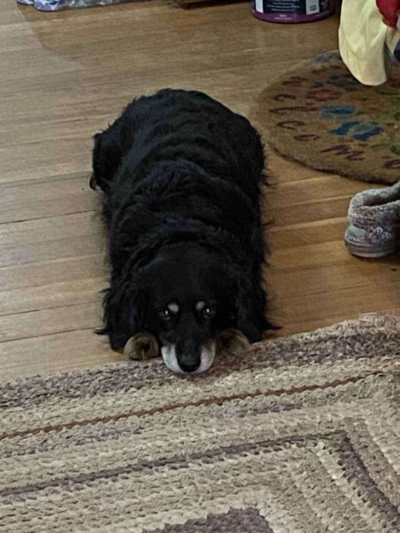Bear is a black and tan long-haired dachshund and is nine years old. He loves to bark at cats, squirrels, and especially the UPS man!