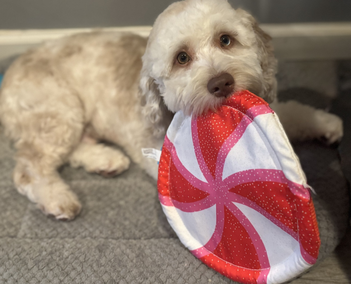 Turkey jerky is Bear’s favorite treat and his Ruff-Tex pug dog ball is his favorite toy
