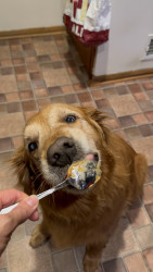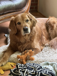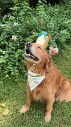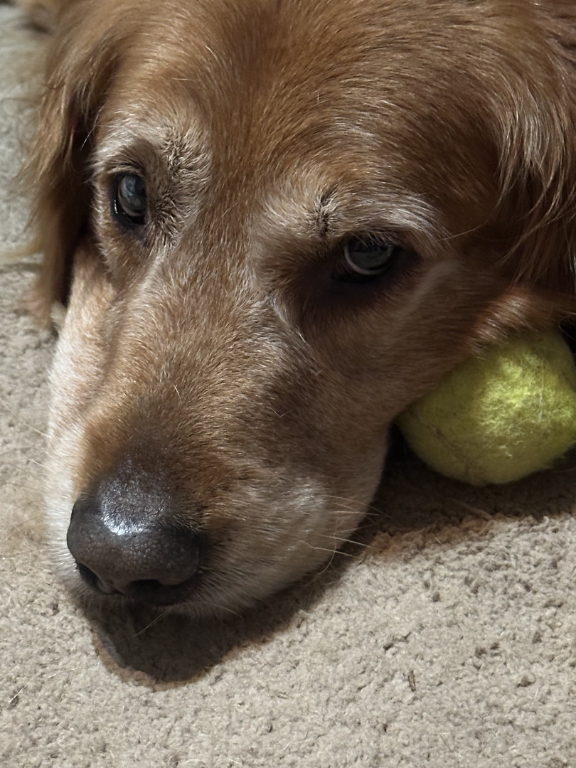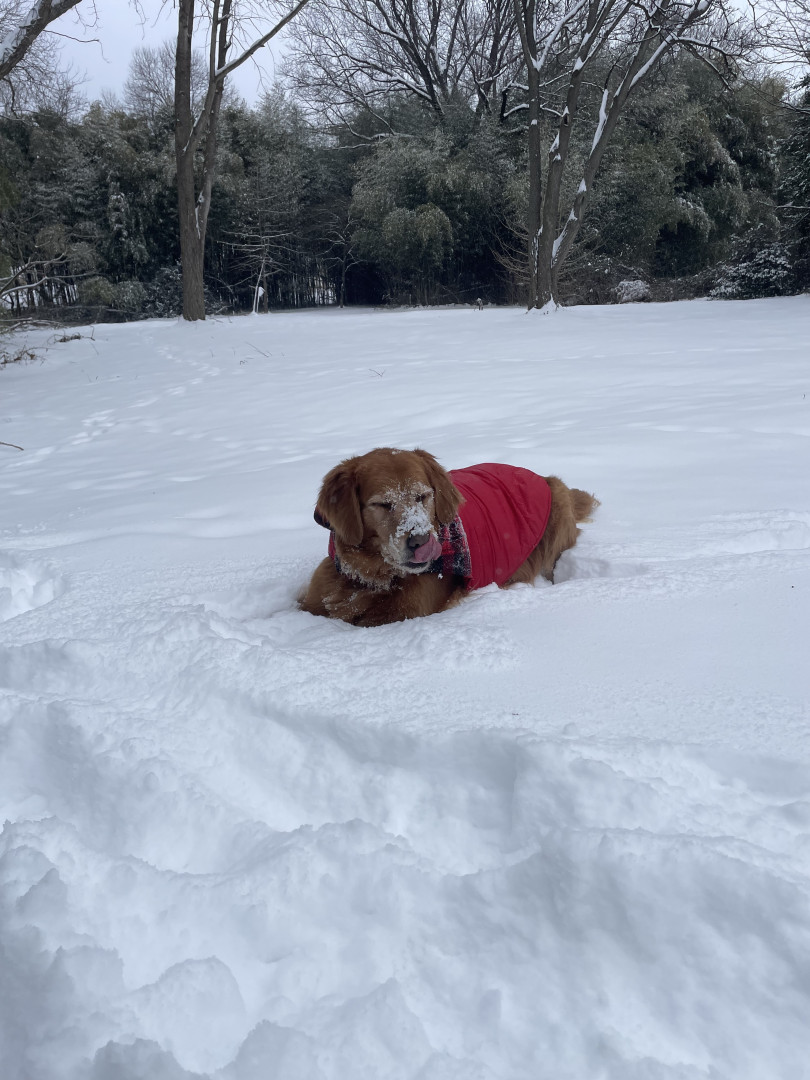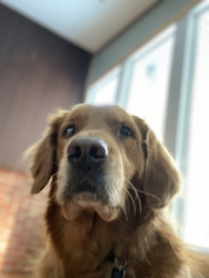 Bear is a happy 9 1/2 year old golden retriever. He won’t acknowledge if he’s bad, he loves the snow, and has a lot of personality.