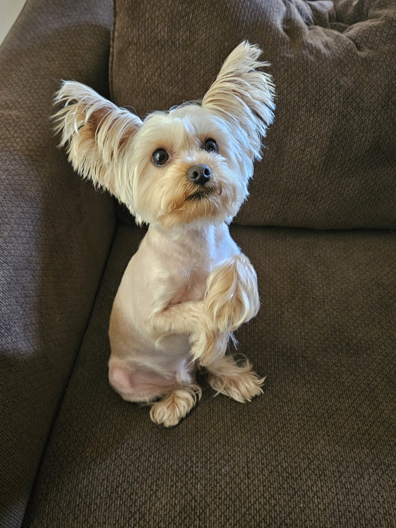 He is my Helping hands fetches items my shoes 👞 socks and or anything I drop. He's family my companion and more. He saved my life and warmed up my heart ❤️ when my father passed away stage 4 cancer just before Christmas 🎄 depression took over me i could die. Another Thank you to ( Kimberly Jackson) on FB drove 12 hrs to bring home to me. Forevergrateful . Bear is a certified service dog . If I become sad or cry bear is amazing always there by my side to comfort me with little kisses .