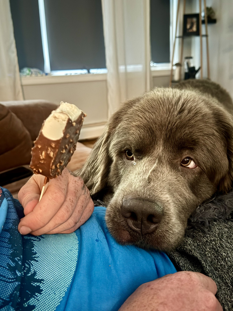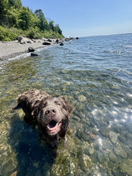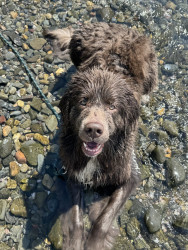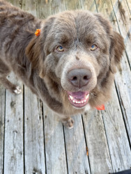 Bearzy is a gentle giant who turns heads wherever she goes! Fluffy Newfoundland with a teddy bear face!