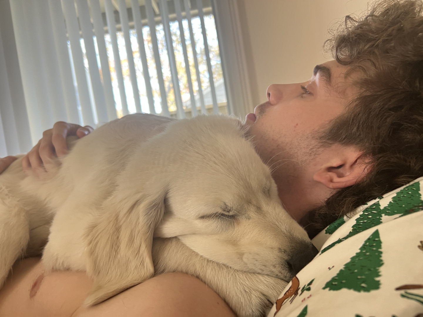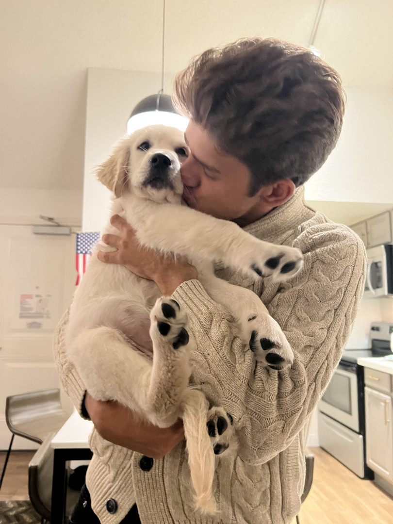 Beaumont - Beau - is a spirited and loving puppy. Beau loves to play and jump, gives kisses and is vocal when he reunites with his owners!