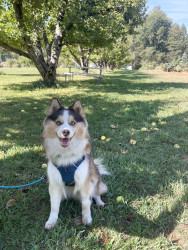 Beau is a Pomsky, and has quite the charming personality! Loves everyone, knows he’s cute, and does what he has to to get what he wants 😂