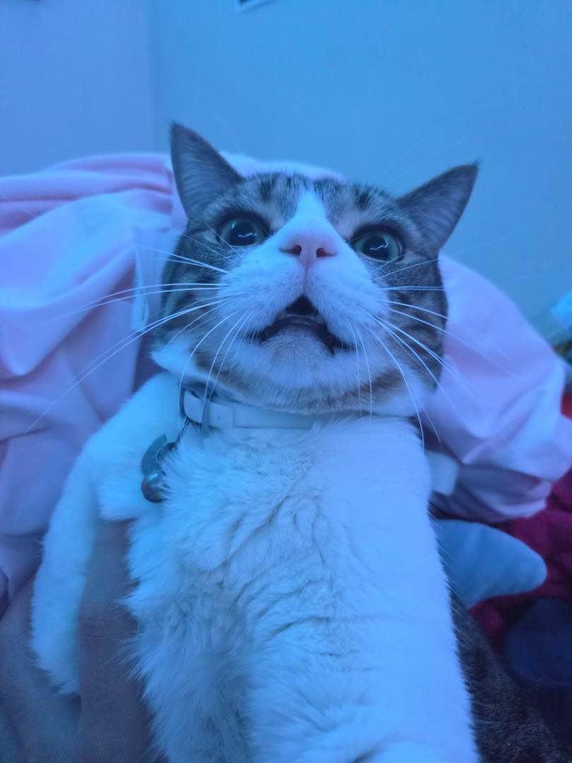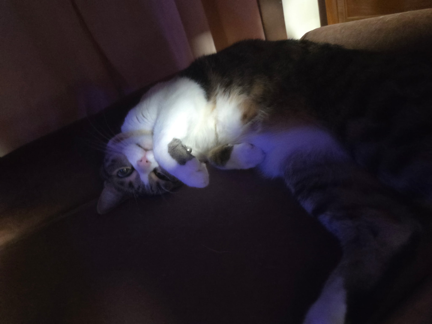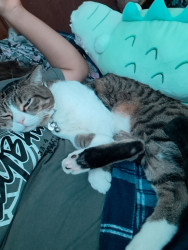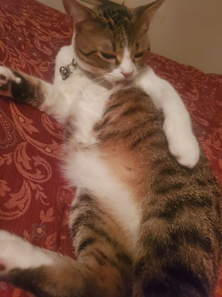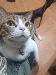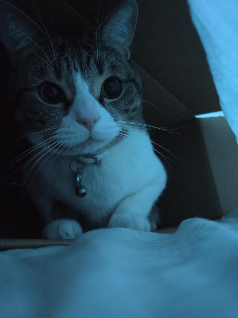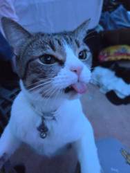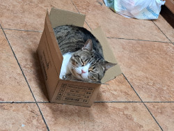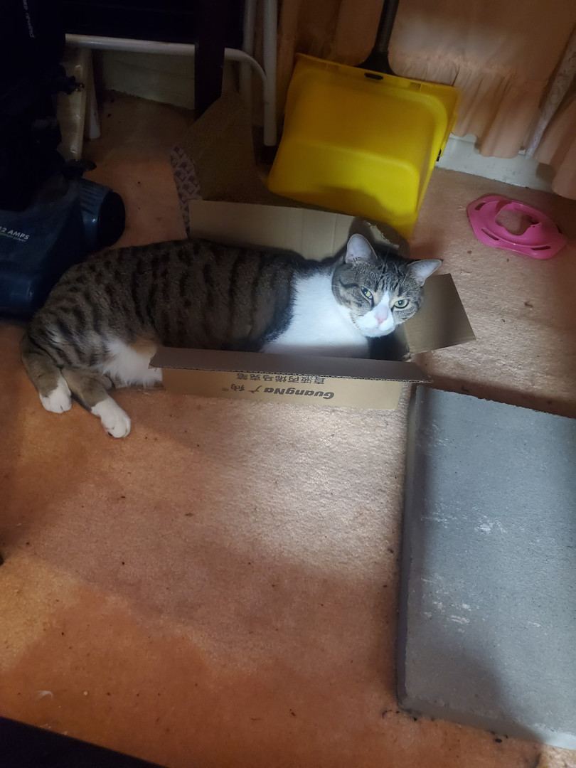 His favorite snack is churu squeeze tubes and he loves cardboard boxes that are his size