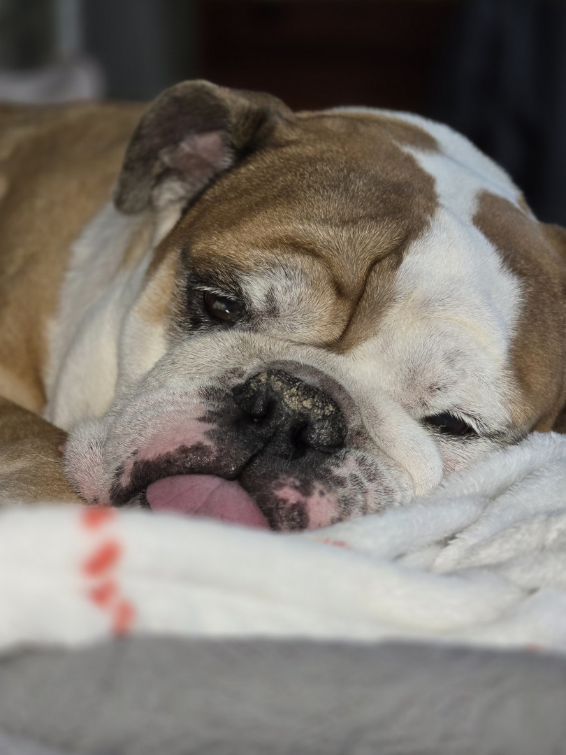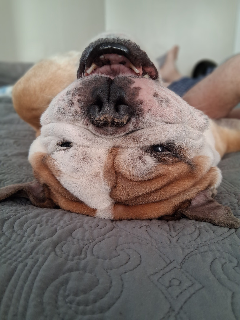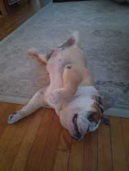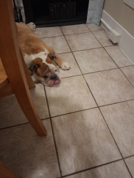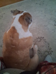 Hes a clown, my big lazy boy, hes smart. He has learned to do tricks. He is a rescue but he also rescued us.
