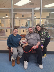 After going through the hell that he has been through, he is very forgiving and very loving towards us. He was with a previous family who created him the whole day and only let him out 2 times a day to go to the bathroom. He never got walks or loved like he should. He now lives with us. His personality is shining through. He is very loving, smart, loyal, gets constant attention. We have spoiled him so much because he deserves it. He gets along great with people and other dogs.