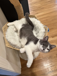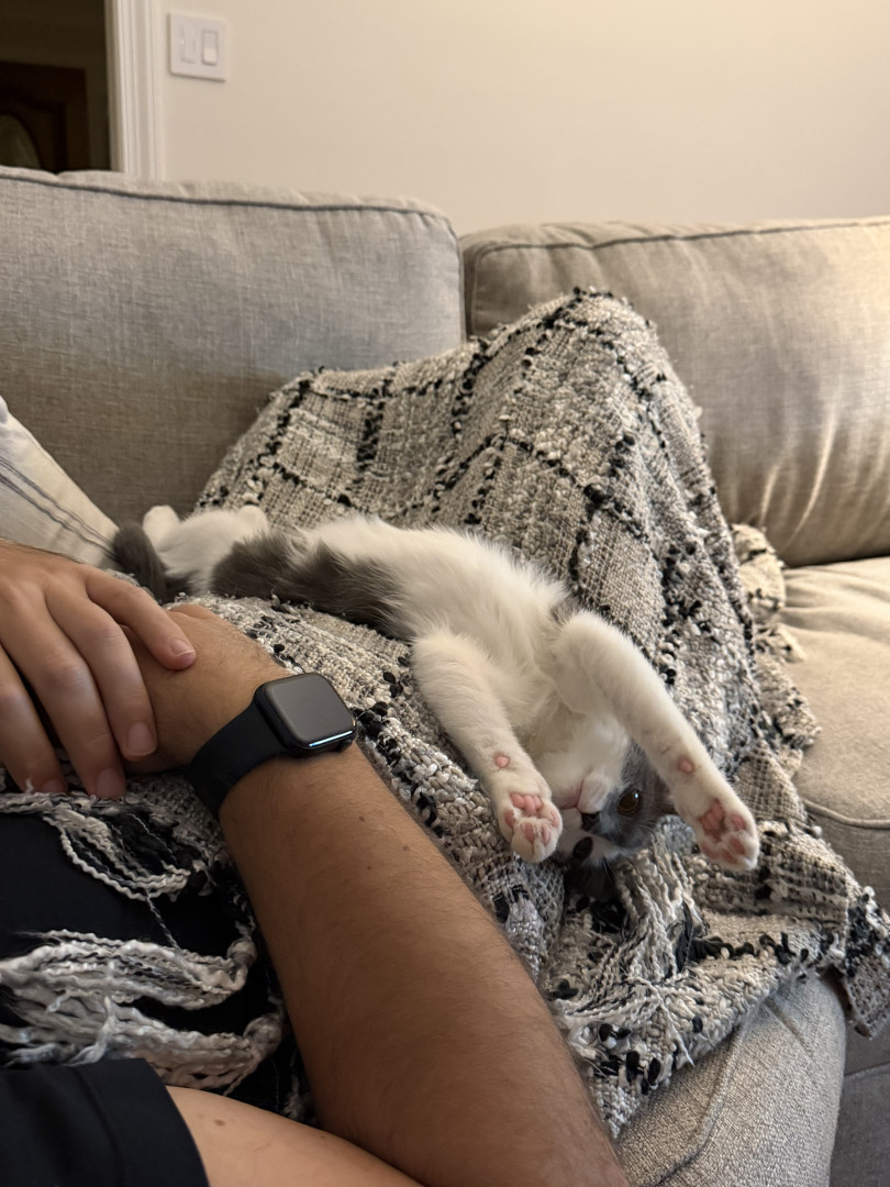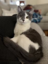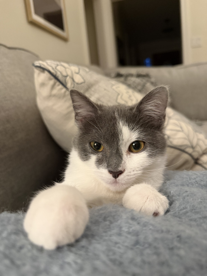 A silly boy who loves to cuddle, play fetch, jump out and scare his humans, watch TV, and model for his future modeling career.