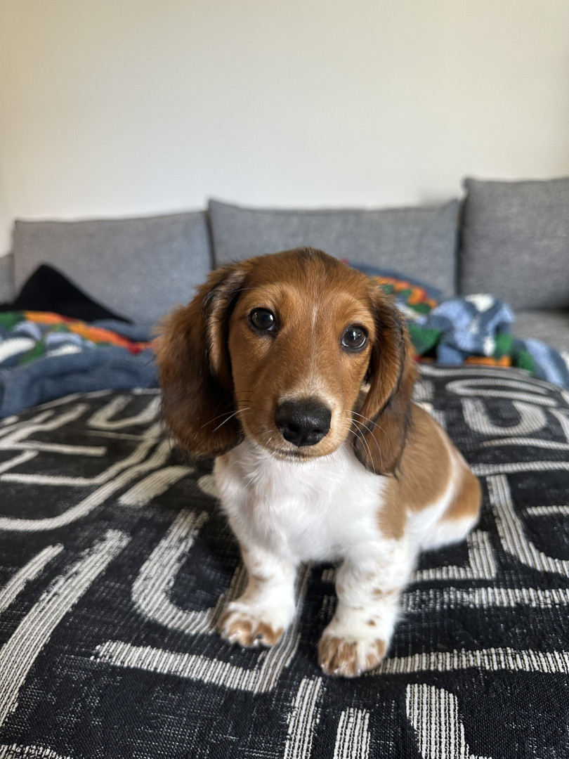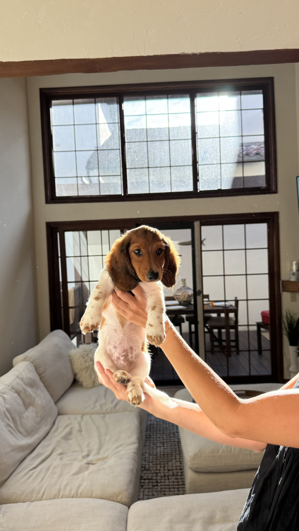 Beignet is a 9 month old long haired dapple and piebald dachshund. He’s very rare and special boy. Both sweet, sassy and kind to all!