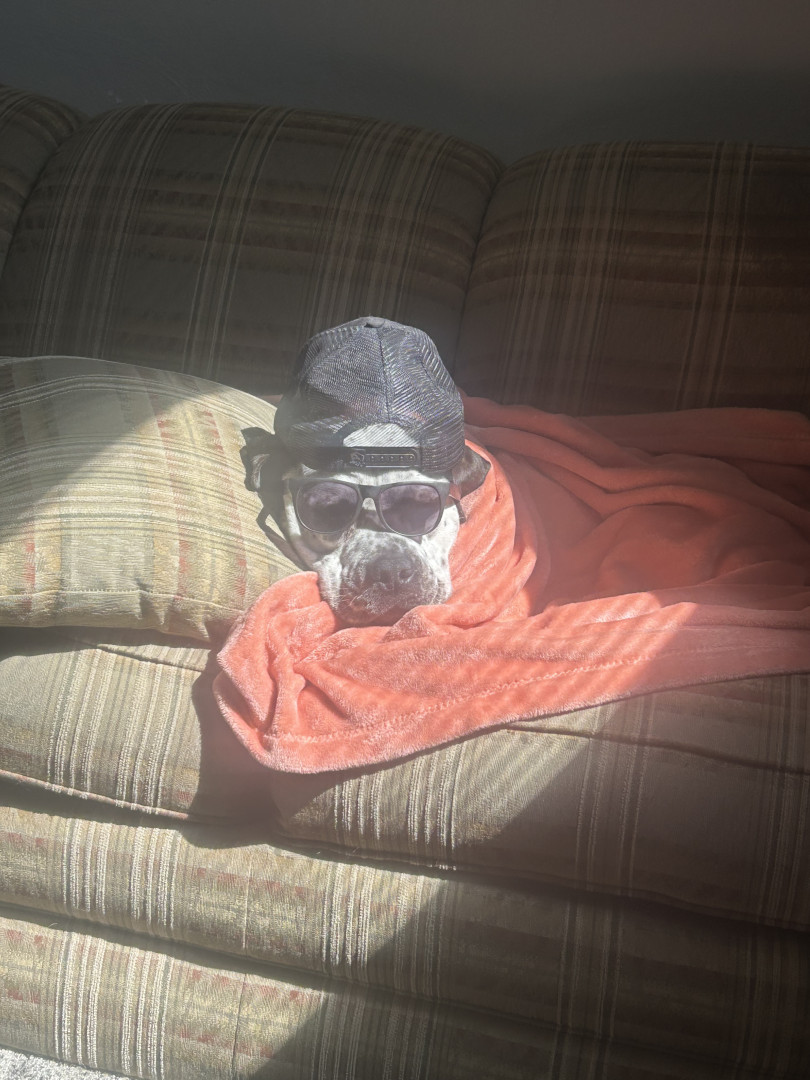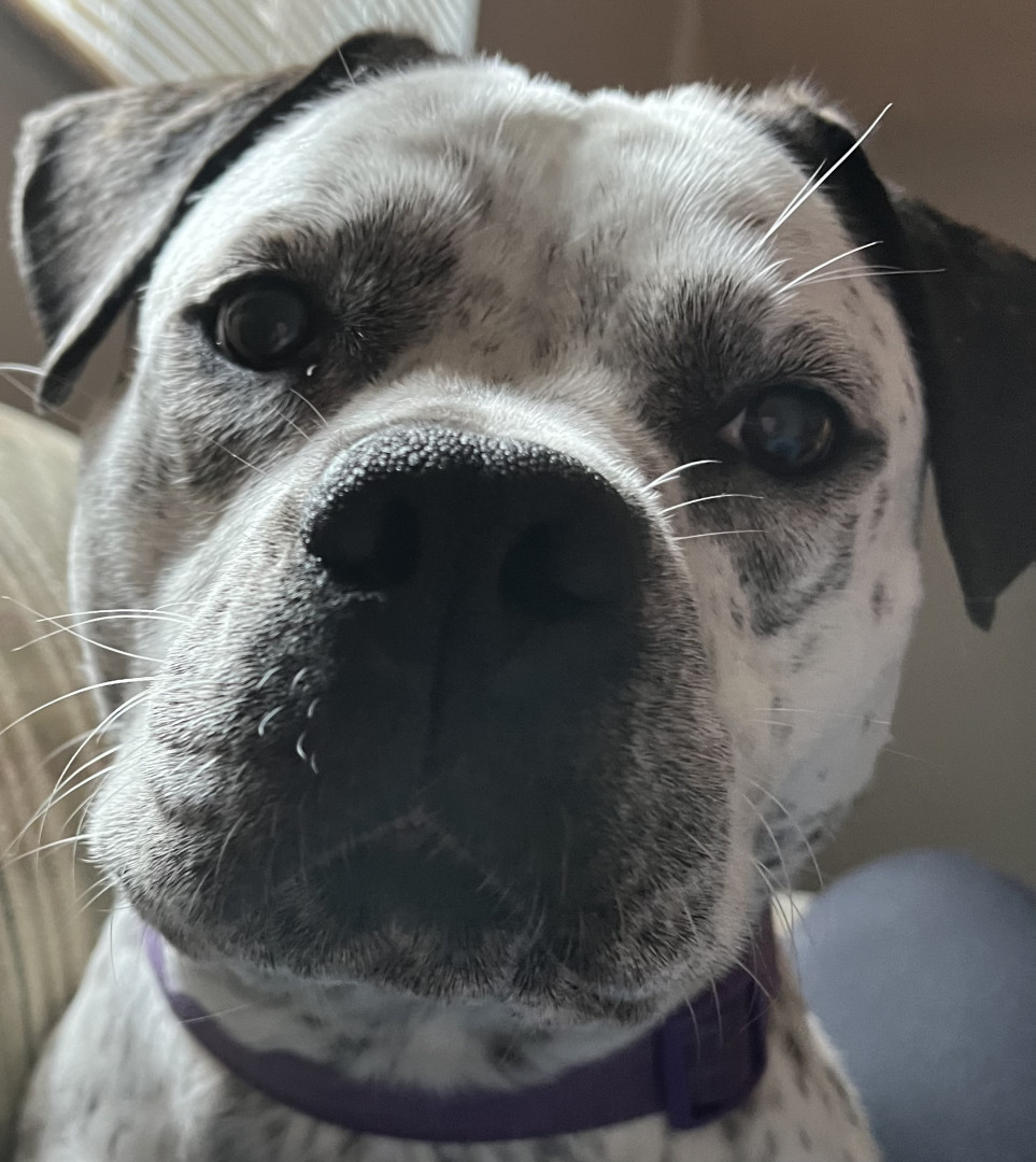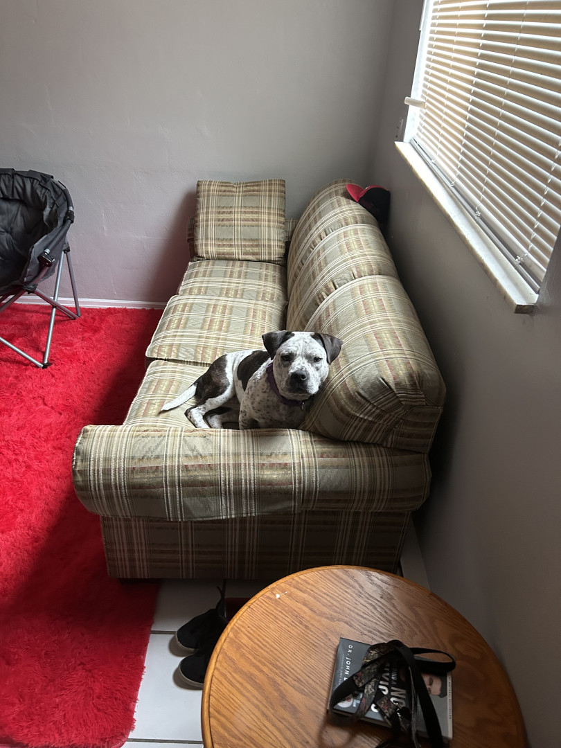 Most loyal kind gentle pitty you’ll ever meet although barks at leaves blowing across the concrete