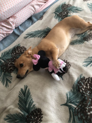 Loves to push her ball under the dresser. Loves a ball!! She loves to keep a toy near when napping or going to bed. Loves getting her teeth brushed every night. She never gets table food. Only her dog food treats! She is the most healthiest dog I ever had !! She is never sick . She behaves very well. She is my emotional support dog ❤️🐾