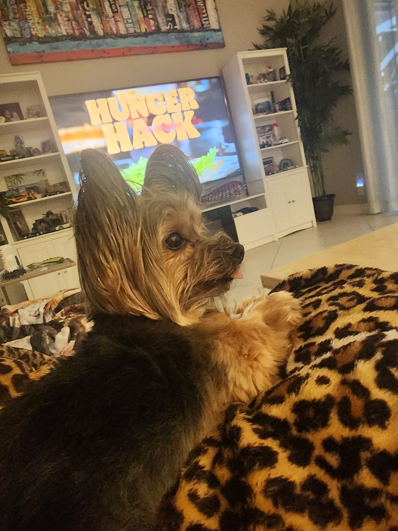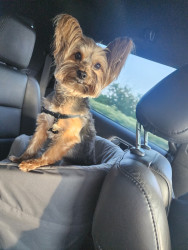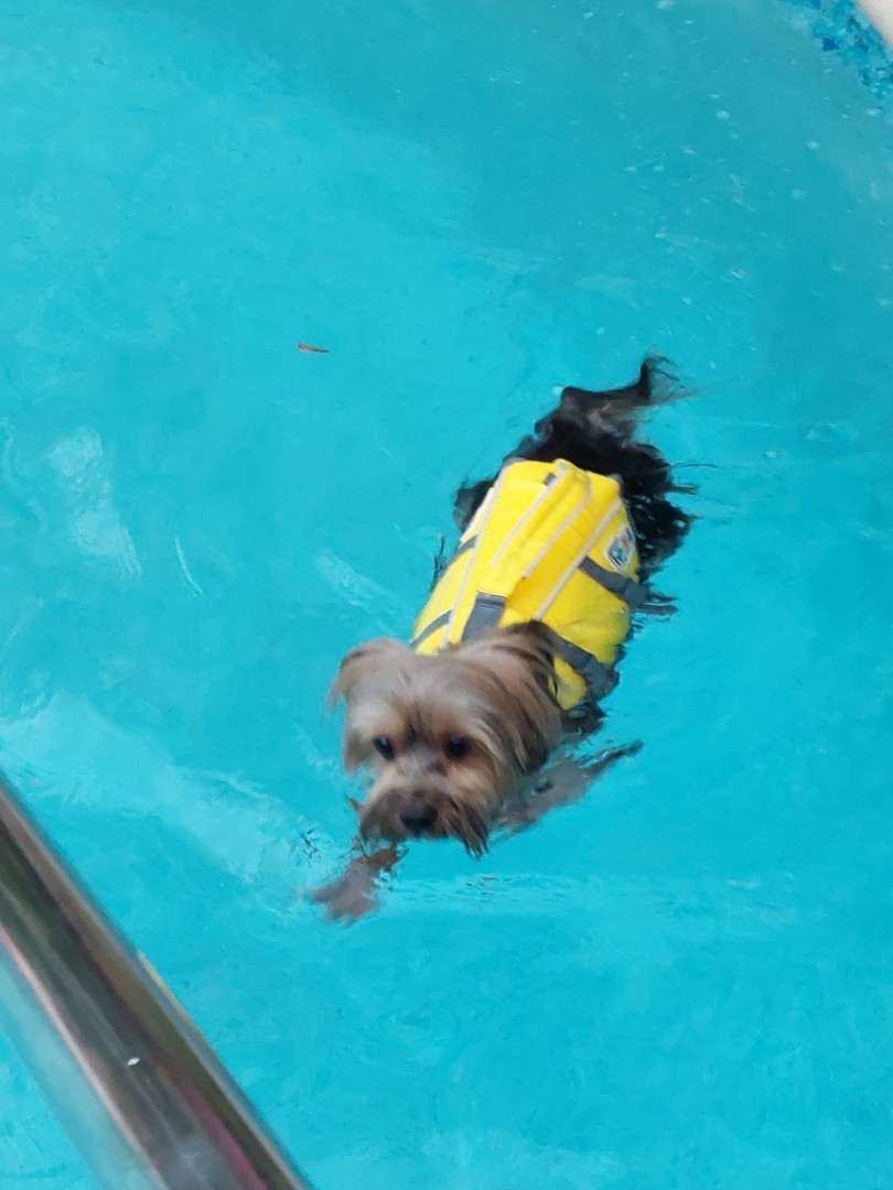 Bella loves to hang with mama and daddy, loves to swim, spray us with the hose, watch TV searching for doggies loves going for car rides