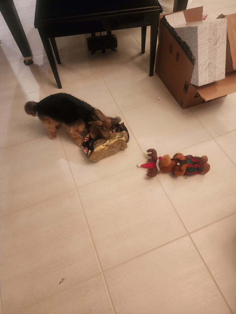 Her electronic mouse.. she love chasing it around the house... when she catches it she brings it to mama with a proud look on her face