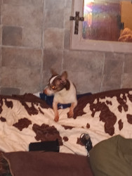 Well she doesn't really have a favorite toy anymore I'm her favorite human but her favorite treat is half a slice of bacon every morning with her breakfast her best friend is a Rottweiler and she just has she is like the sweetest dog ever she loves to curl in my lap she has to be beside me and she is a diva she knows she is Little Miss princess if you do not give her the attention she wants when she's wanting it oh my goodness she will yell at you but other than that she's my little princess