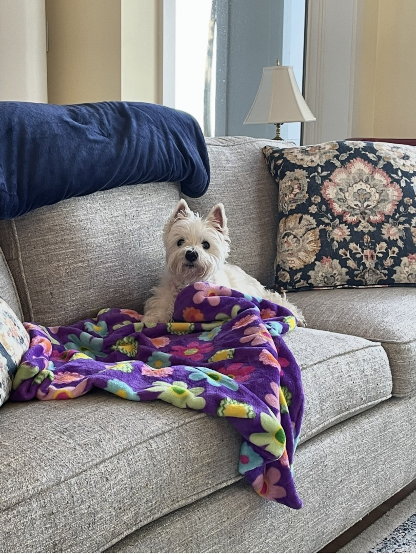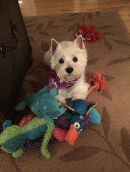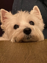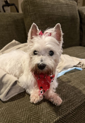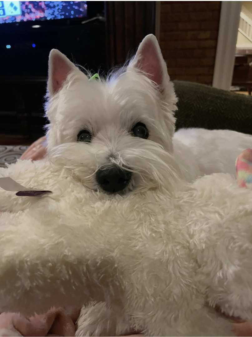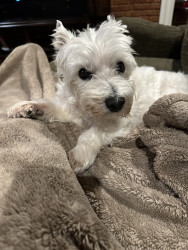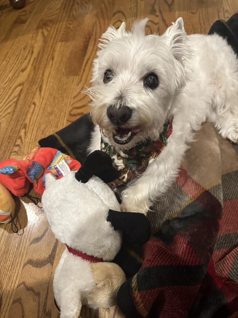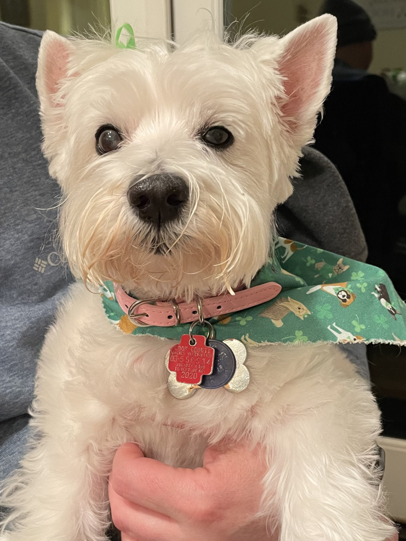 Bella is a 16 1/2 year old Westie who is adorable, loyal, lovable, stubborn and so spoiled. We are so grateful to have her in our lives!
