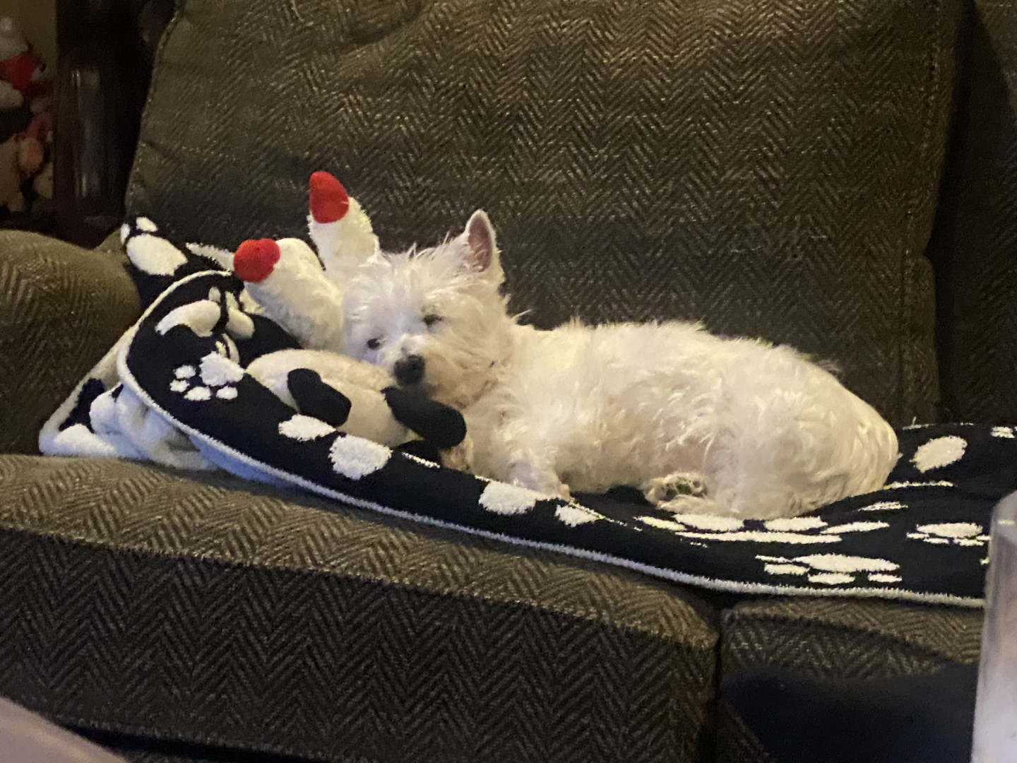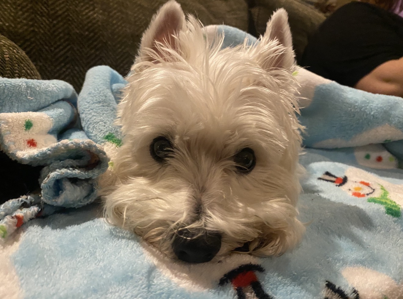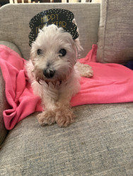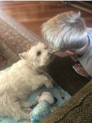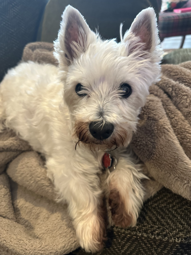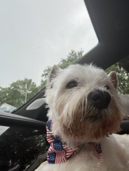Bella is a 16 1/2 year old Westie who is adorable, loyal, lovable, stubborn and so spoiled. We are so grateful to have her in our lives!