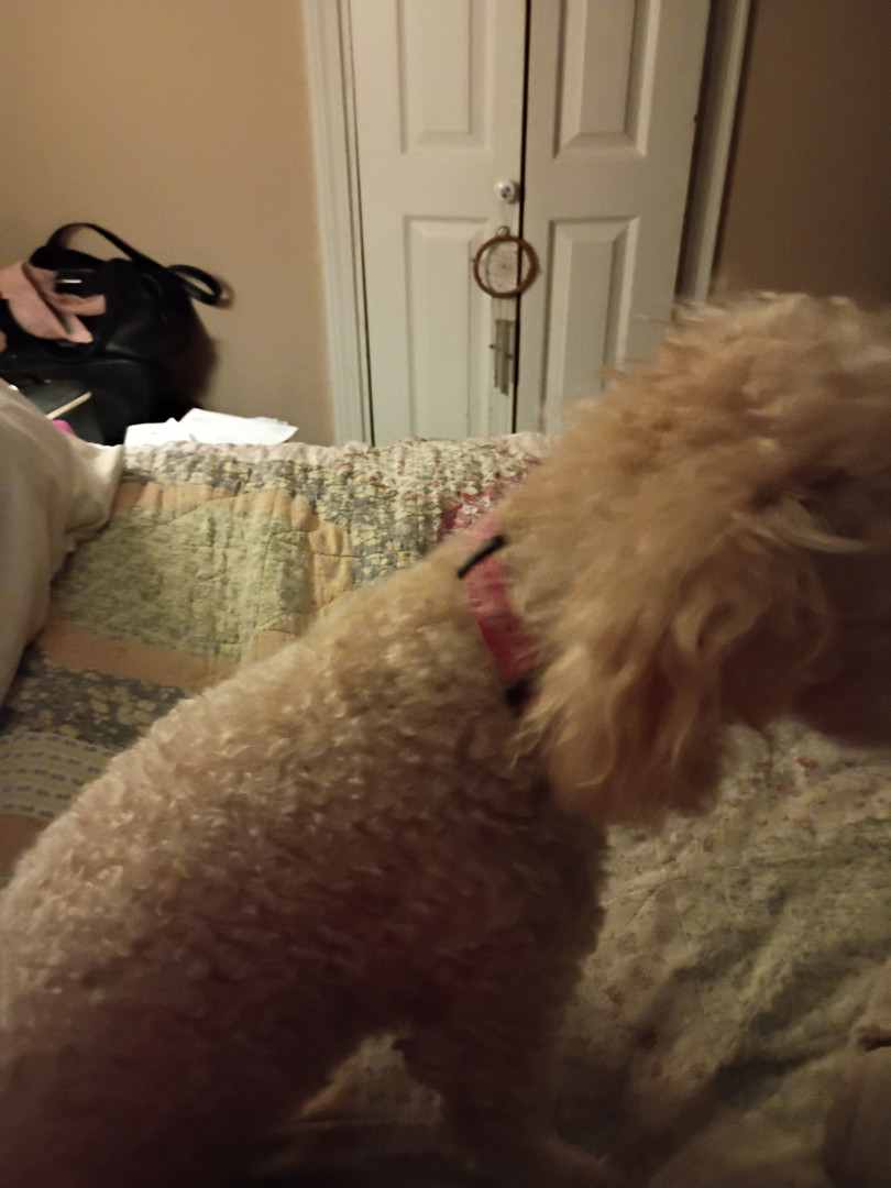 She's a mix poodle with terrier. Very sweet and loving dog.