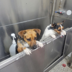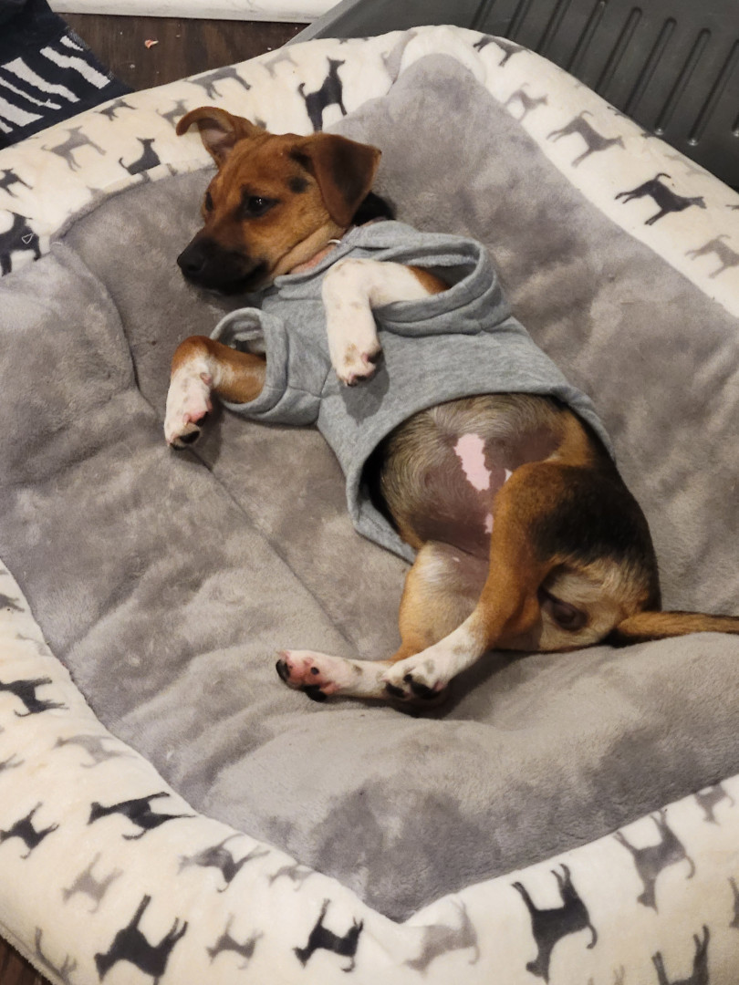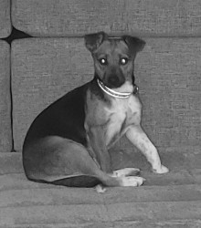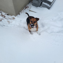 Bella is black, tan with white paws. She is 2 years olds. She is shy, adventureous, sweet, and the most lovable dog in the pack.