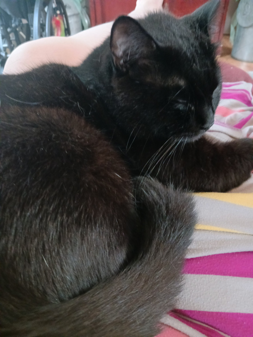 She is such a sweetheart she loves to br in the middle of whatever is going on loves to lay in front of the window with the sun shinning on her