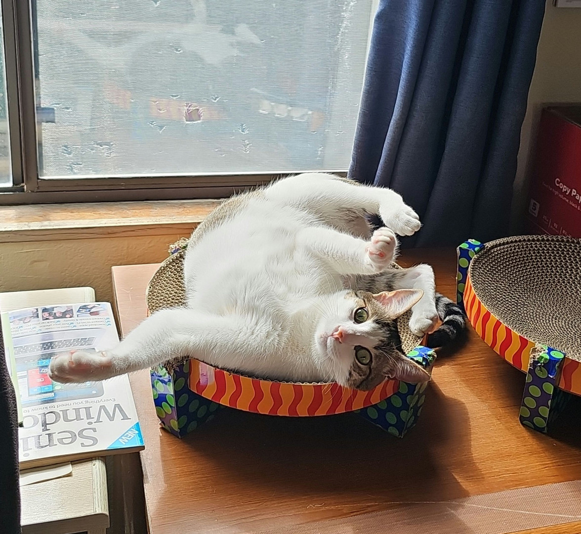 Bcuz she deserves it. Even though she's a pampered indoor furbaby, she's had it rough. At 6 months old, she broke her leg playing with her sister and had to get pins in her leg.