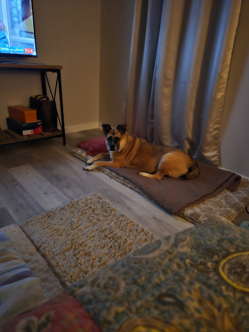 She's the sweetest old lady dog. She'll be 11 years old on January 20th. Bella loves being as close as possible to her mommy.