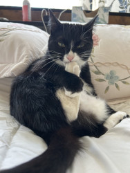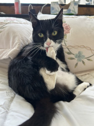 While cats are known for cleaning themselves, Belle takes cleaning her toes very seriously. She snorts and snuffs with cleaning each and every toe and all the spaces on her feet.