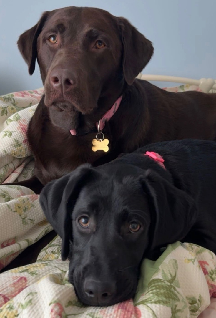 Belle is a 2 year old chocolate lab ans Molly is a 5 month old black lab. They are inseparable and the best of friends.