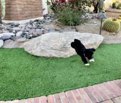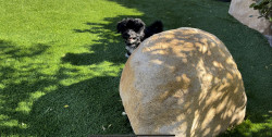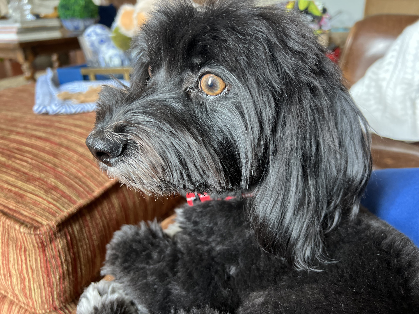 The word "bene" translates to "good" in Italian. Bene is very good at leaning, snuggling & protecting our home from golfers!