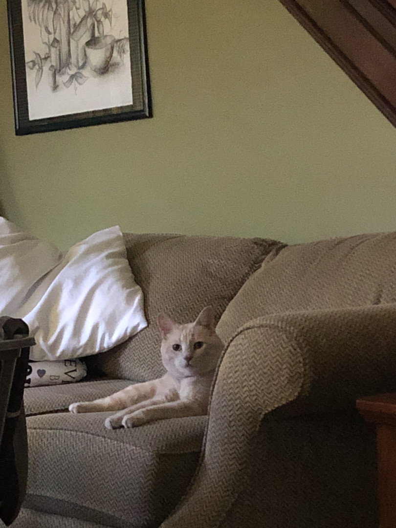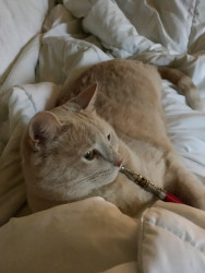 Learn MoreToy - little ball that hangs off his scratch post Treat - tuna fish