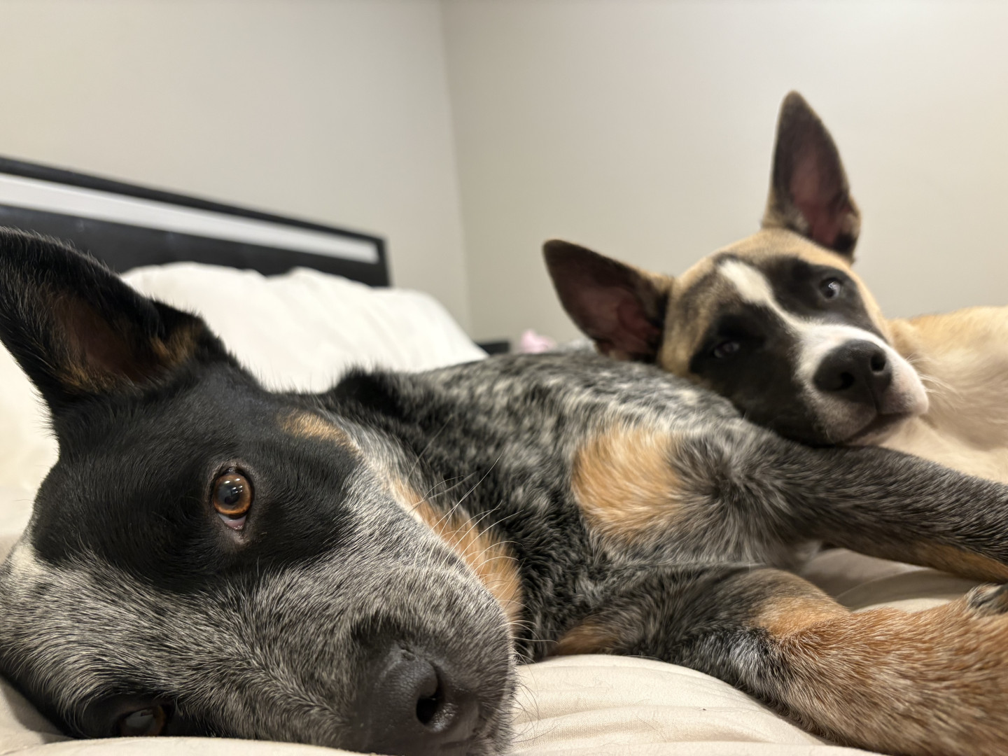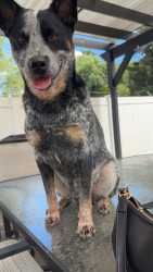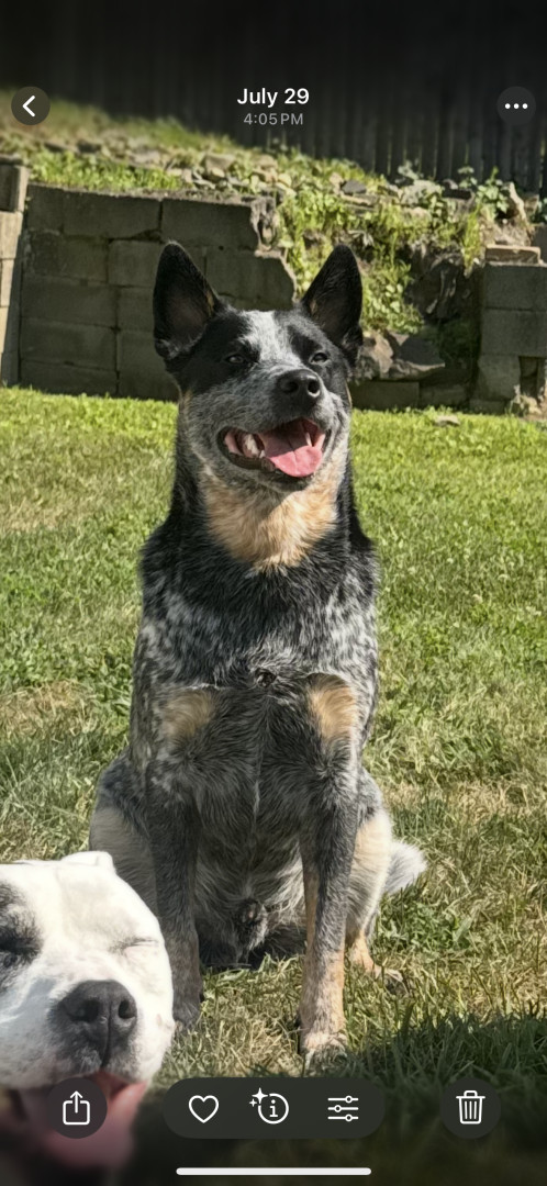 Bennett is a blue heeler full breed. The most loyal and loving dog. He is by moms side no matter where she goes & loves to play with brother