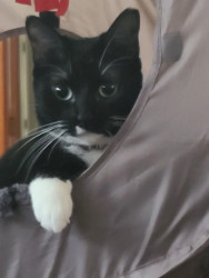 Bennie is a female tuxedo and she is nothing but joy for our family she poses for photos where ever she can