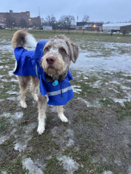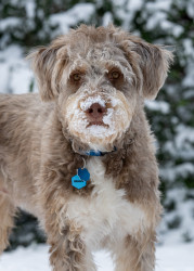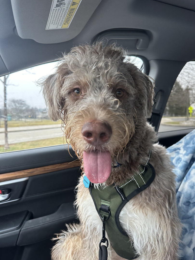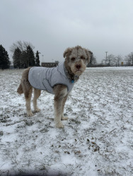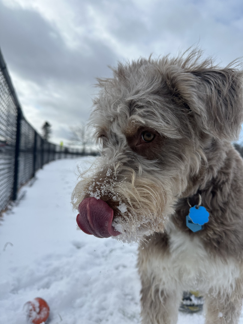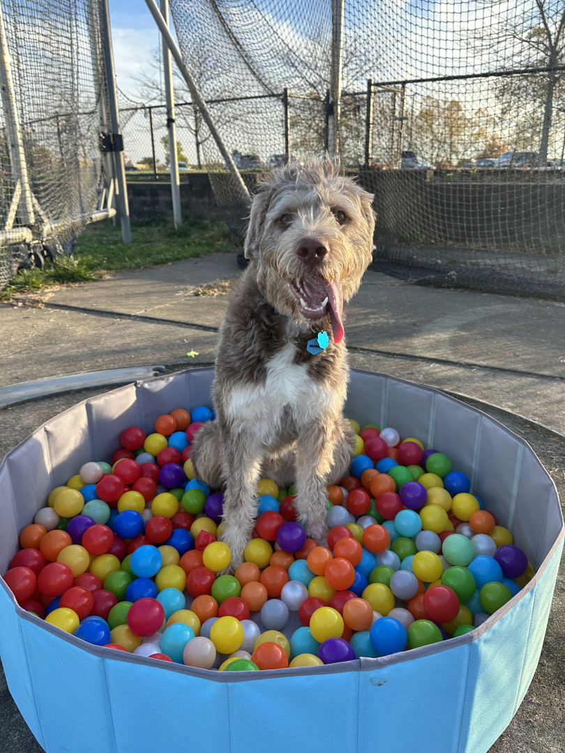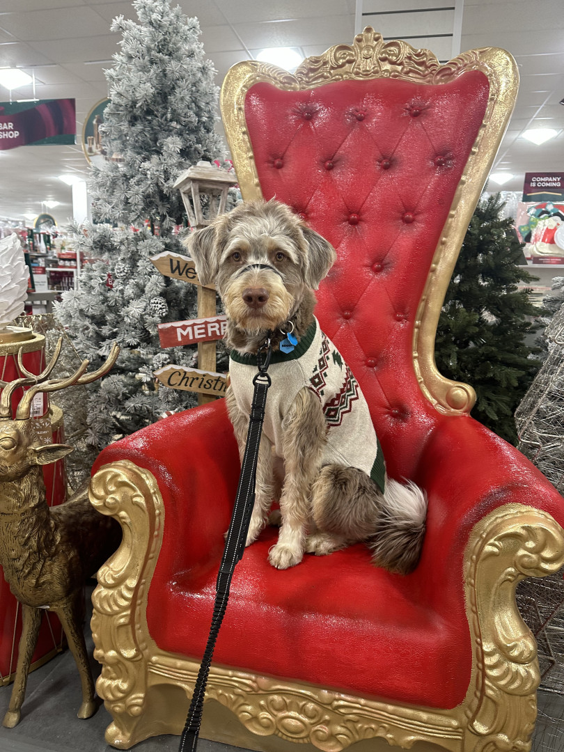 Benny is a 10 month old husky poodle mix who loves to go to the park and play with friends (no matter the weather) and loves to shop.