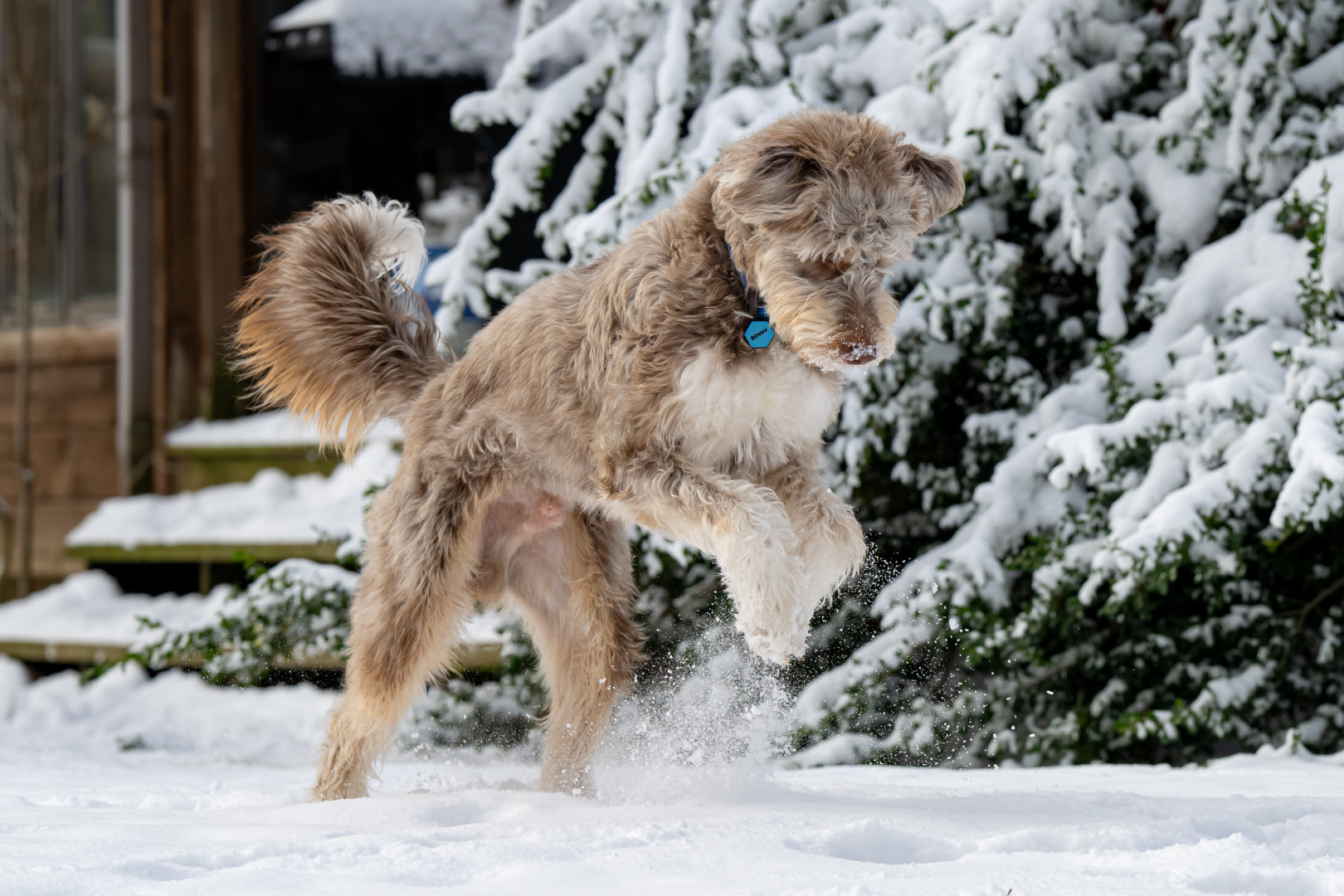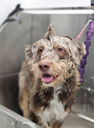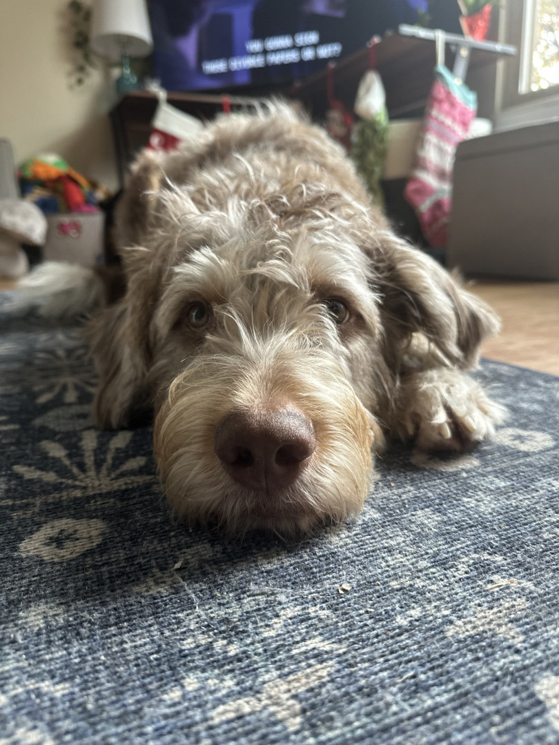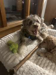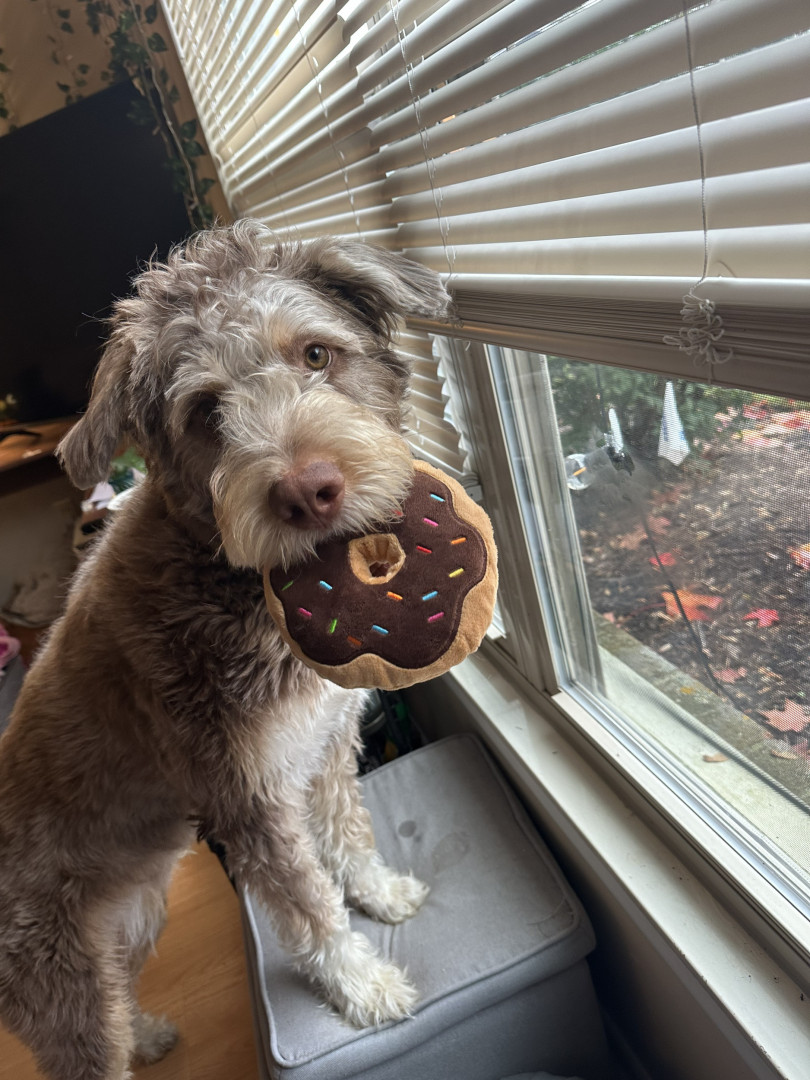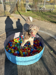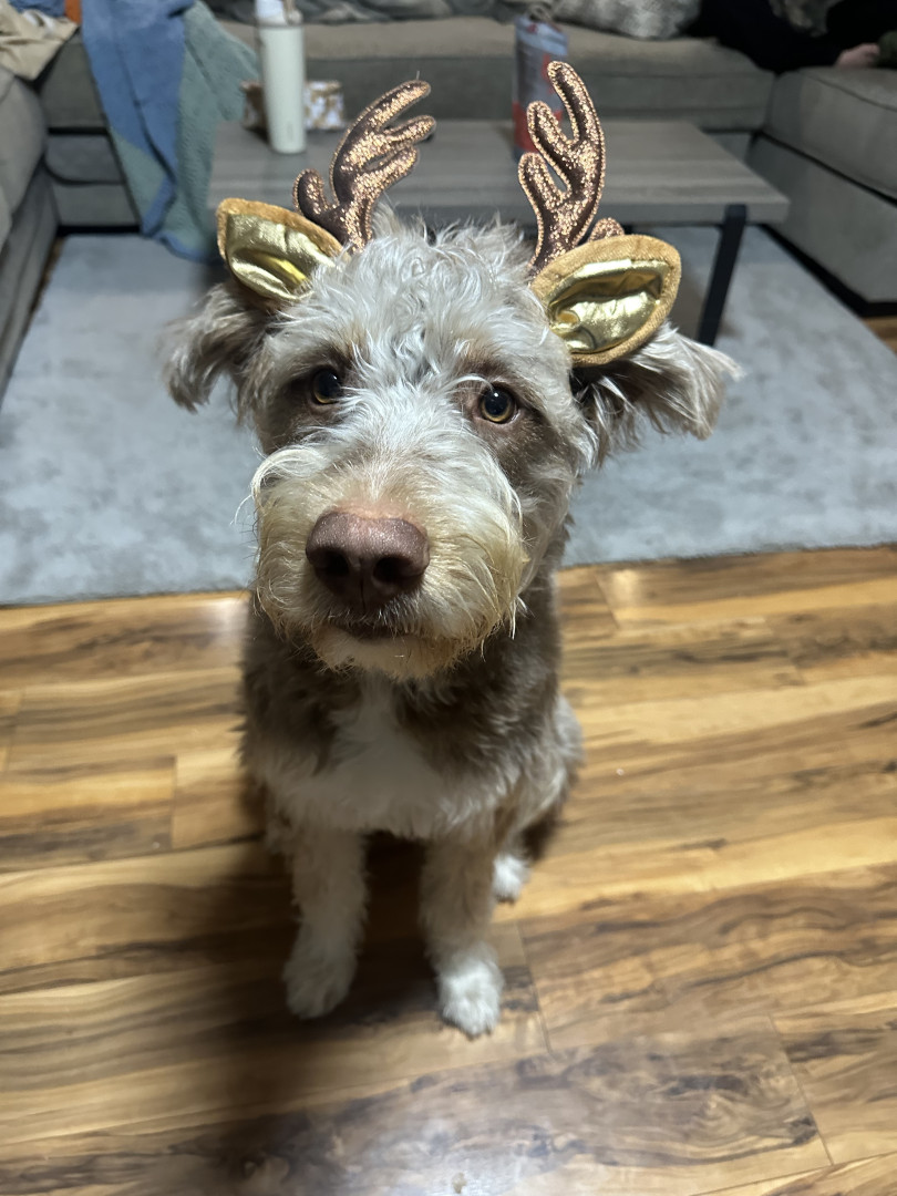 Benny is a 10 month old husky poodle mix who loves to go to the park and play with friends (no matter the weather) and loves to shop.