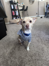 Benny is a sweet, rescued chiweenie. He is a tripawd that loves to cuddle, eat, and seek out attention/pets whenever he can.