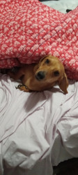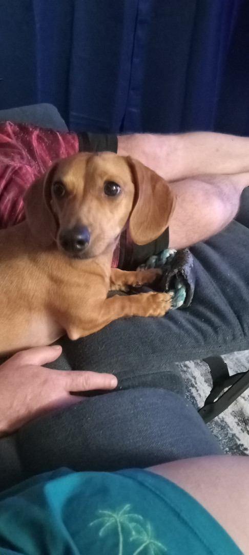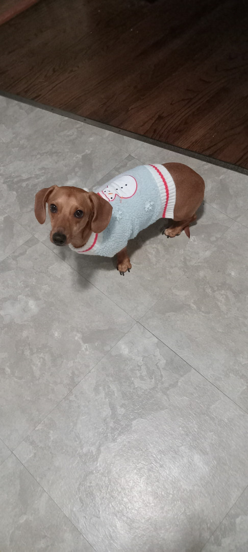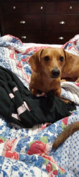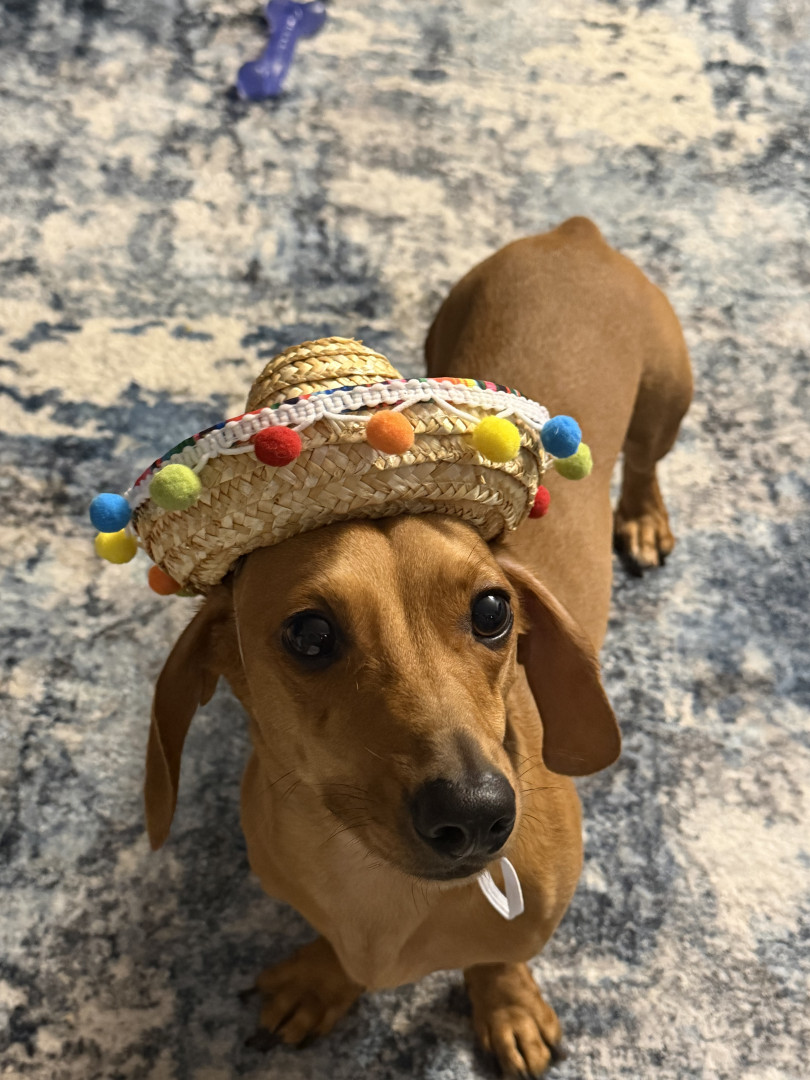 Benny has little short legs, big floppy ears, and a long body but has a huge personality that will melt your heart all while he licks you to death. He is stubborn and loves to side eye you even when he knows he is wrong. He will have you trained to play fetch in no time and you will be sharing whatever you are eating with him as he guarantees! He is the best companion and the best snuggle bug. And come bath time, hide and seek is his favorite game. He is full of chaos yet charming and so loved