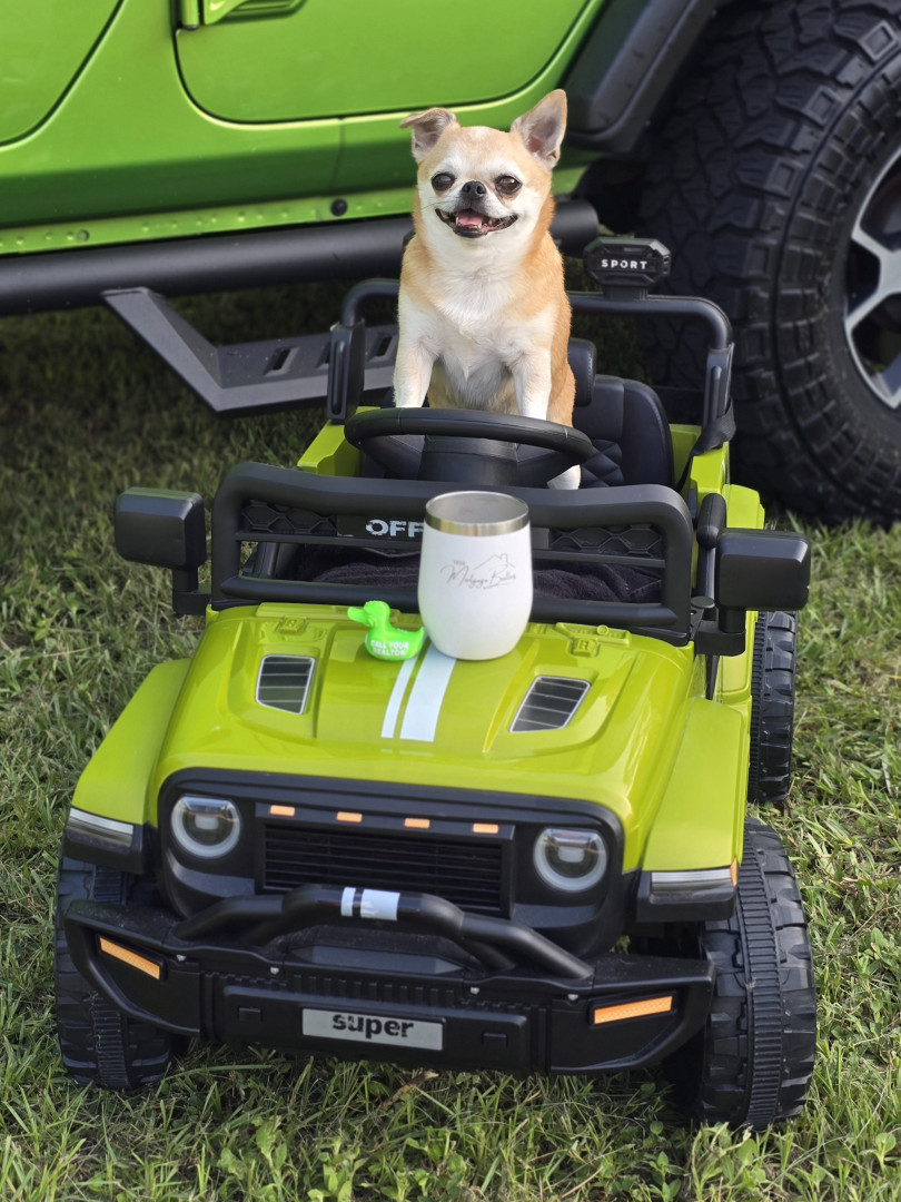 Bentley unique quality is posing for the camera. Seriously big poser. He loves to ride in his green jeep to meet his clients, yes his clients. Mr. Bentley and I are Realtors. He is very personable just loves everyone, he has a wonderful talent of putting people at ease and feeling of relaxed.